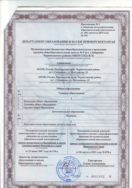 Адрес местонахождения образовательной организации* 692390, Приморский край, Черниговский округ, пгт. Сибирцево, ул._Постышева,13